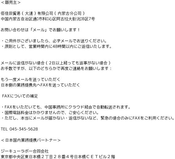 弊社のサービスは中華人民共和国及び、日本国法令上、「個人輸出および輸入代行」の扱いとなります。 そのため、お客様都合による返品や交換、注文後のキャンセルには応じかねますのでご了承ください。 ただし、特段のご事情ある場合、取消手数料のご負担をいただき対応することも可能ですので、ご相談下さい。 |